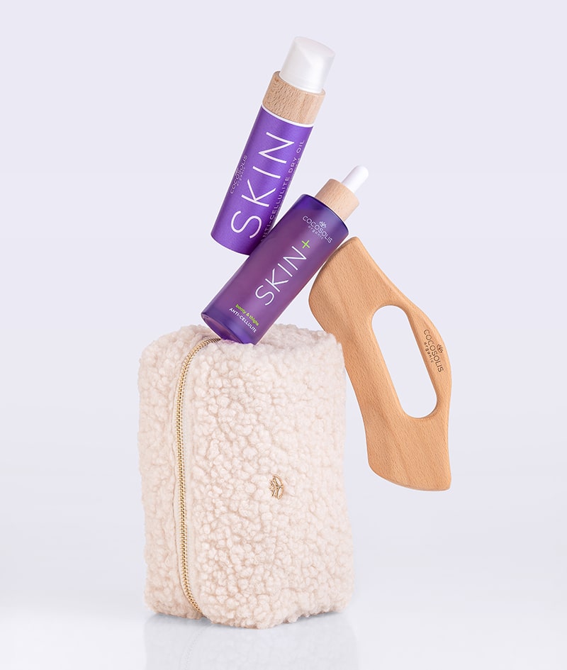 O sérum SKIN+ reduz visivelmente a celulite, graças a 4 ingredientes ativos em concentração máxima. O óleo seco SKIN Anti-cellulite , aplicado com o massajador BODY GUA SHA, intensifica o efeito anticelulítico e ajuda a MOLDAR as curvas do corpo.