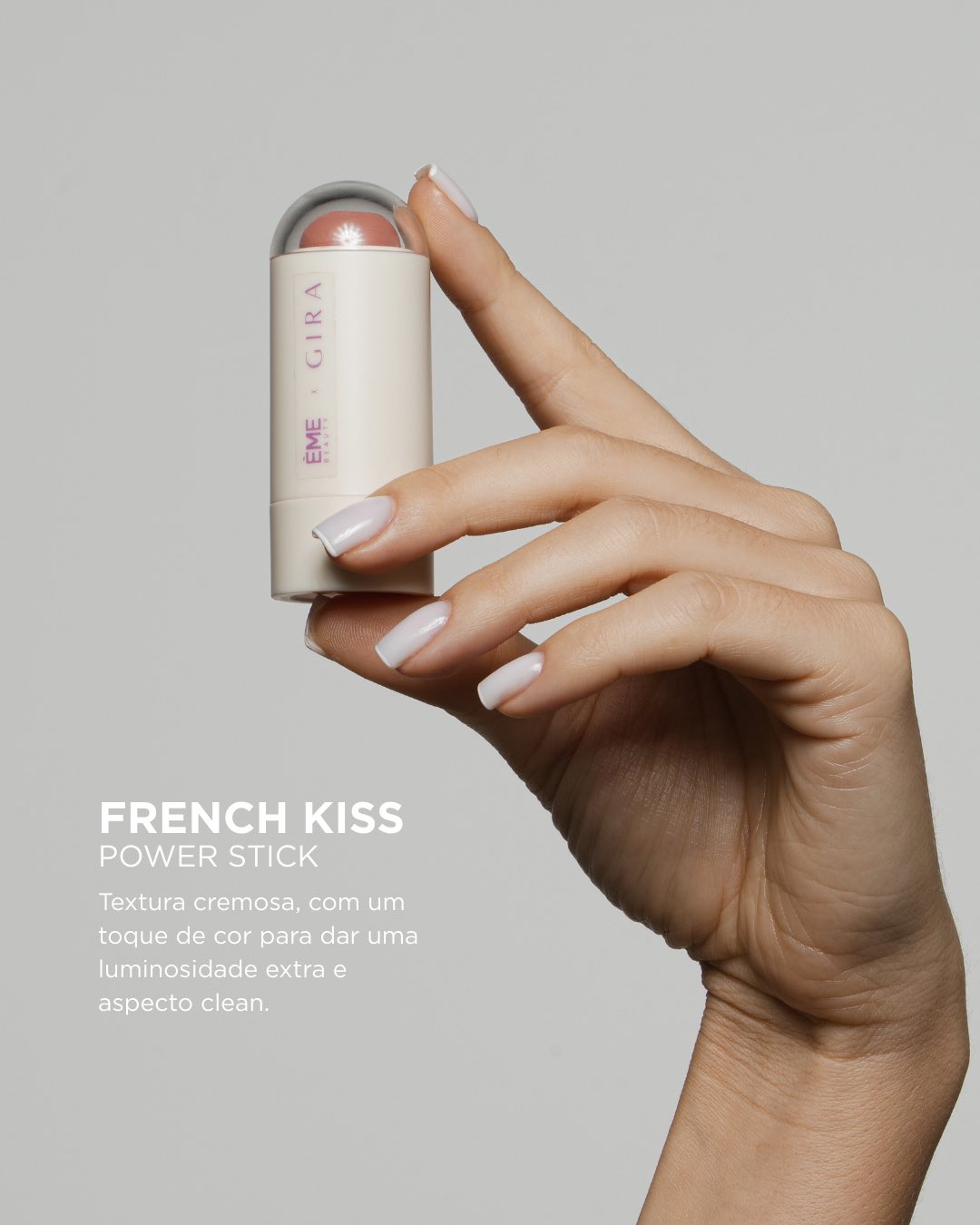 O Power Stick French Kiss foi desenvolvido com uma fórmula cremosa e leve em formato bastão que se funde perfeitamente na pele e lábios proporcionando um tom nude natural com um acabamento fresco e saudável.
